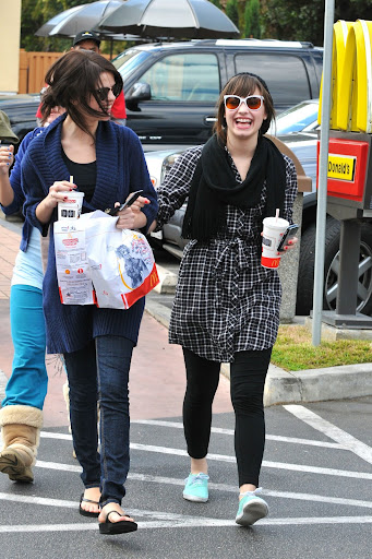 Demi Lovato sortent d'un McDonalds. Elles sont accompagnz de Dallas
